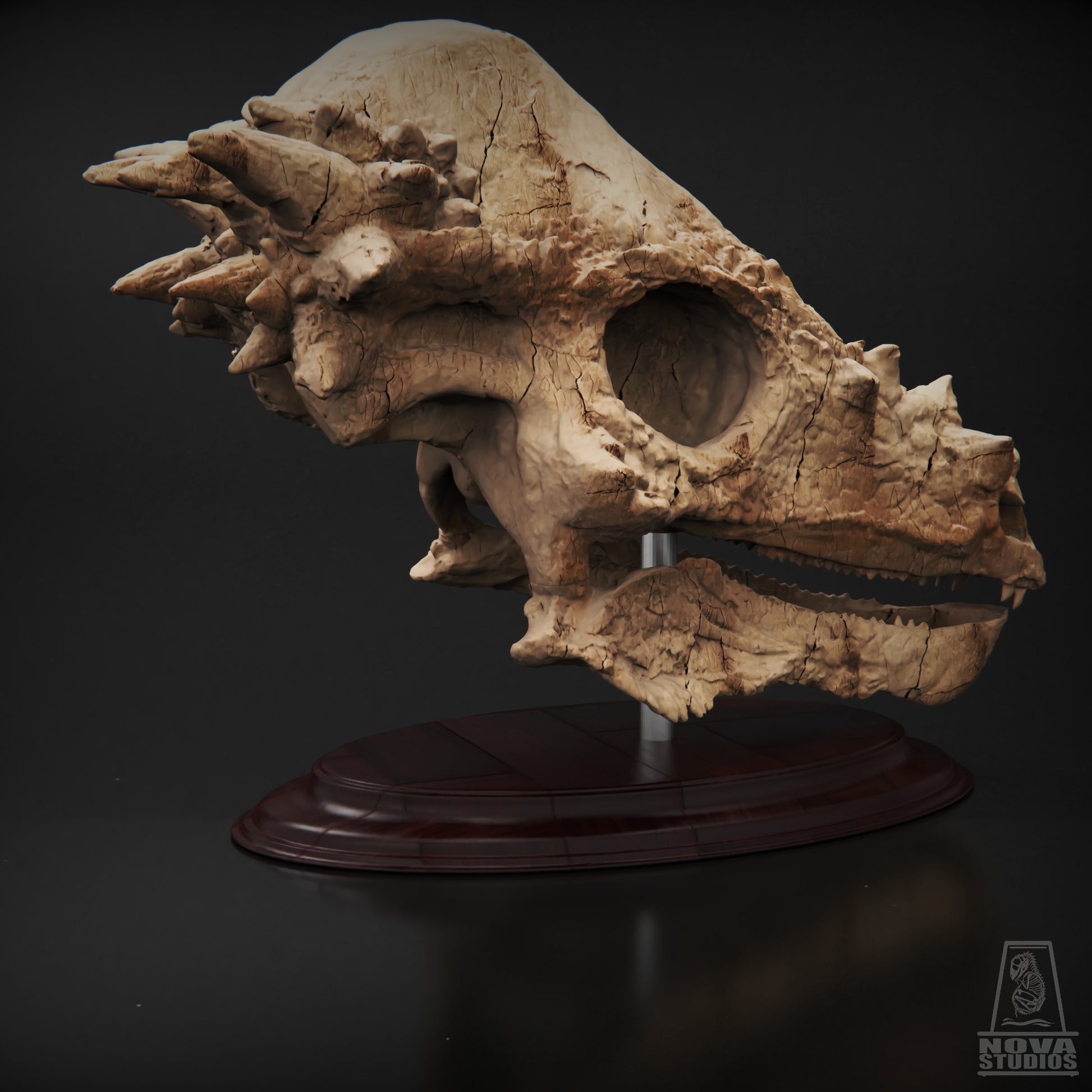 We at The Fossil Hunt are proud to offer this stunning skeleton designed by Nova Studios, whose exceptional paleoartistry and precision modeling bring prehistoric life vividly into the modern age.